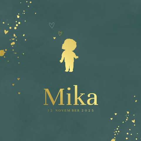 Dit is een hip geboortekaartje met natuurlijke elementen. Leuk voor de geboorte van jullie zoon. De naam en twee takjes worden in hoogglans gedrukt. Het kaartje kan naar wens aangepast worden in de online editor.