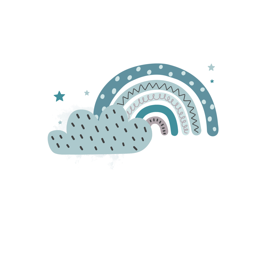 Trendy goudfolie geboortekaartje voor de geboorteaankondiging van je zoon met een blauw regenboogje met een wolkje en sterretjes.