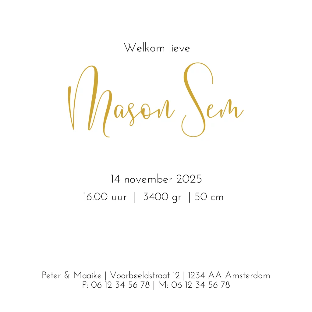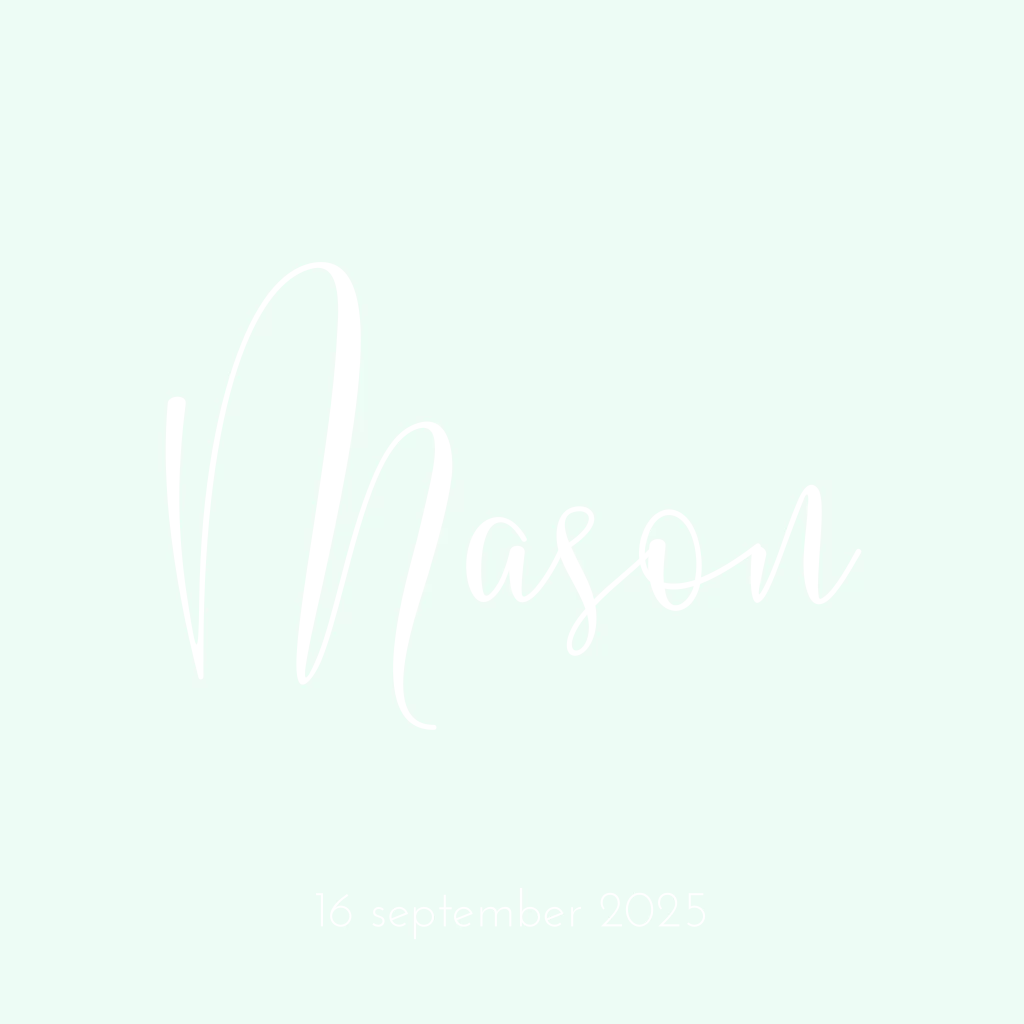 Hip geboortekaartje met de naam op de voorzijde in goudfolie op een mintgroene achtergrond. Bestel snel een proefdruk om te zien hoe gaaf dit kaartje in het echt is.
