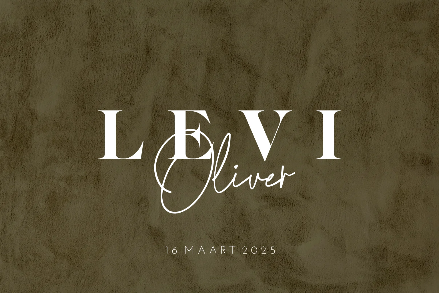 Op dit typografische babykaartje staat de naam van je zoontje centraal in mooie letters. Een deel van zijn naam wordt gedrukt in goudfolie en maakt het kaartje extra bijzonder! De achtergrond heeft een olijfgroene velvet look.