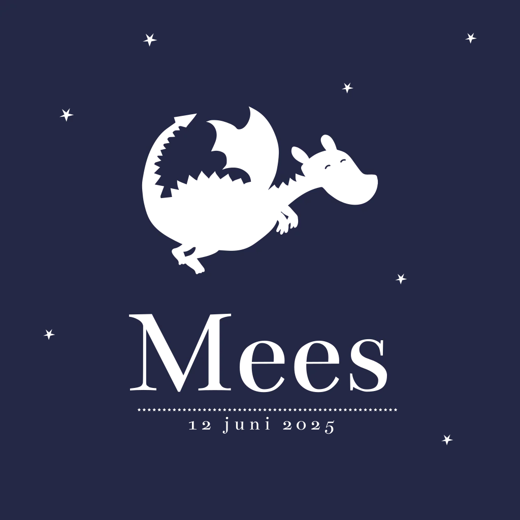 Een stoer kaartje met een draakje dat in roségoudfolie is gedrukt. Naast het draakje zijn ook de naam, de datum en de sterretjes in roségoudfolie.
