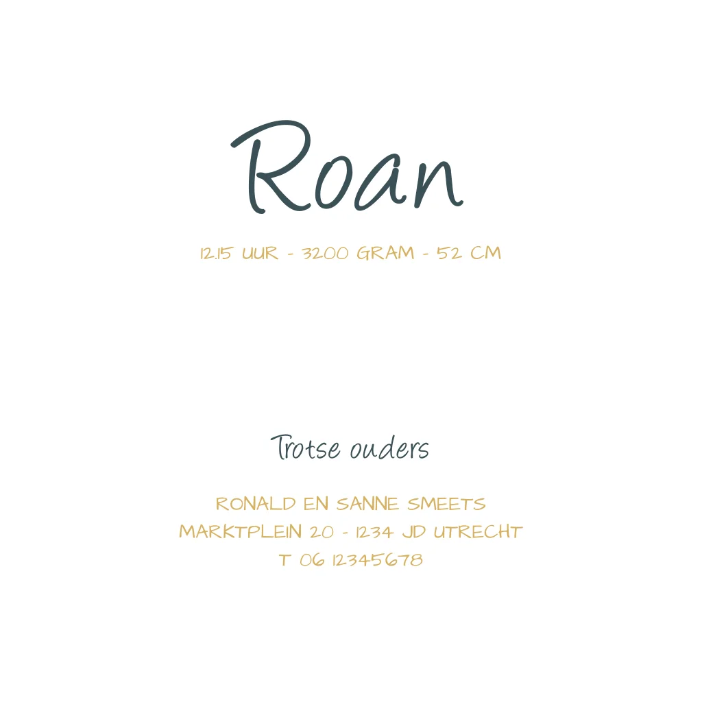 Luxe babykaartje voor de geboorte van jullie zoontje. Het maantje, het zonnetje en de sterren worden gedrukt in goudfolie. De stoere blauwe achtergrond maakt dit kaartje helemaal af. Bestel snel een proefdruk om dit kaartje in het echt te bewonderen!