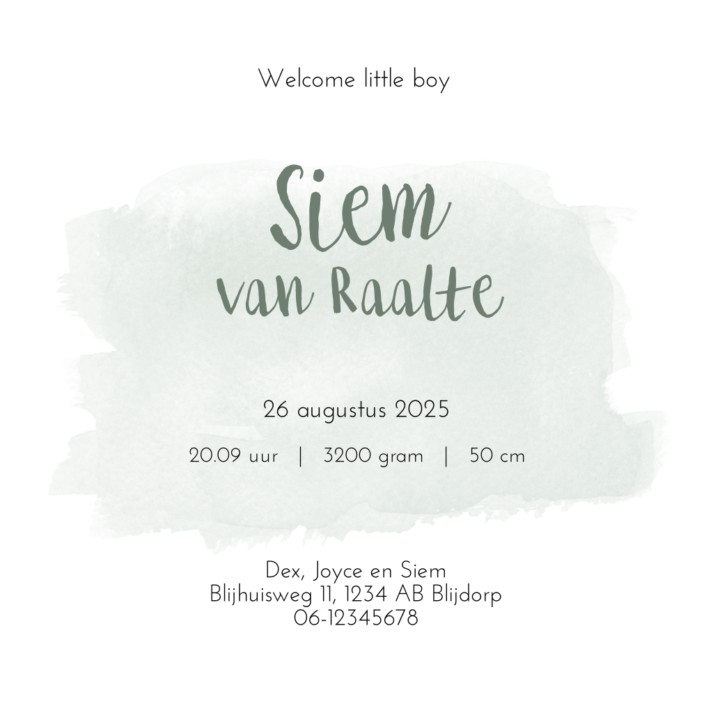 Boerderij geboortekaartje voor de geboorte van je zoon met een hip zwart folie silhouet van een jongetje op de tractor en boerderijdieren.