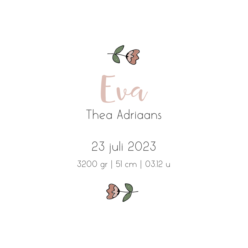 Een uniek geboortekaartje voor een meisje met hand getekende bloemen. De naam staat in goudfolie in een oudroze cirkel.