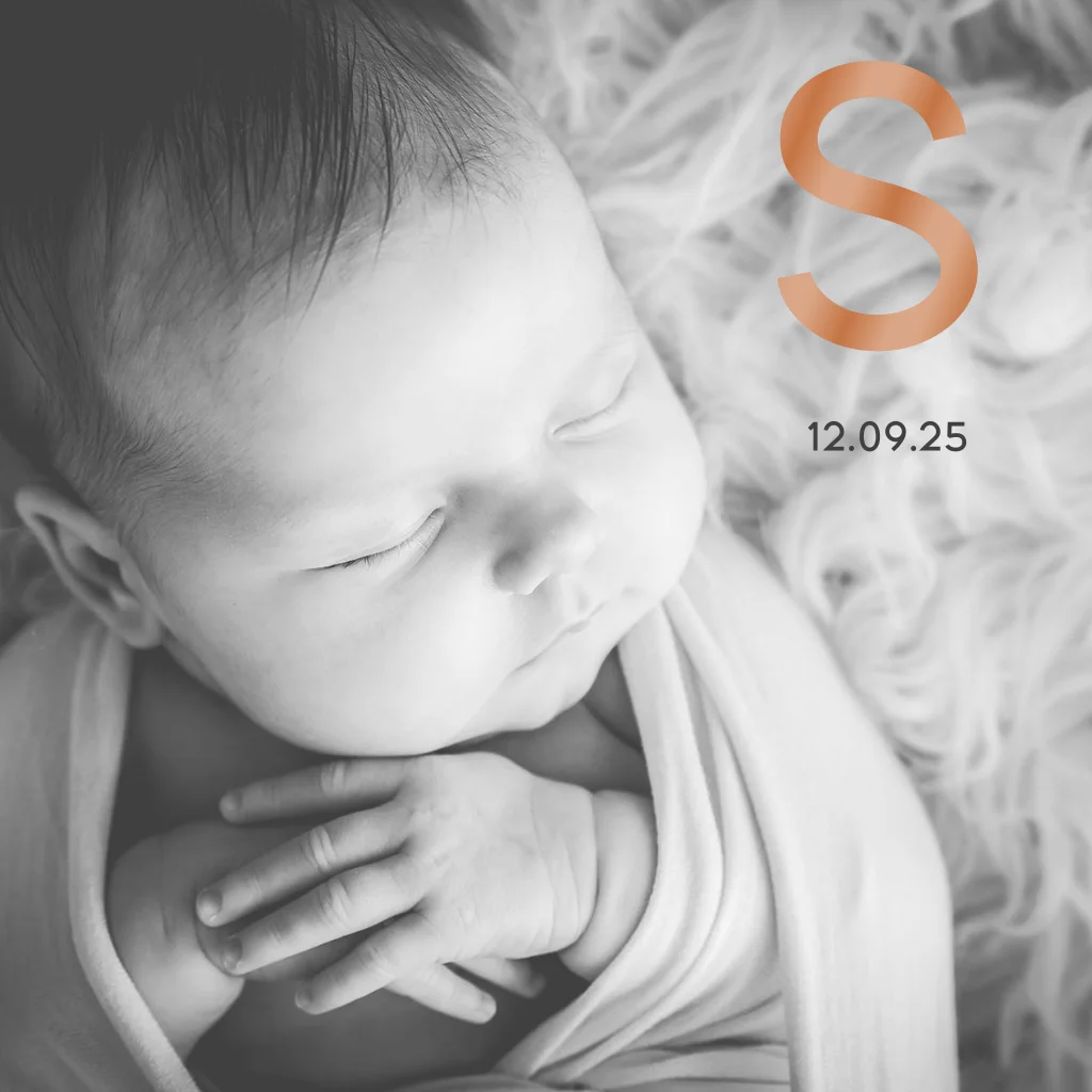 Dit geboortekaartje met foto van jullie eigen kindje en de letter van de naam in hoogglans is super uniek en origineel. Leuk aan dit design is, is dat de naam op de achterzijde ook in hoogglans is.