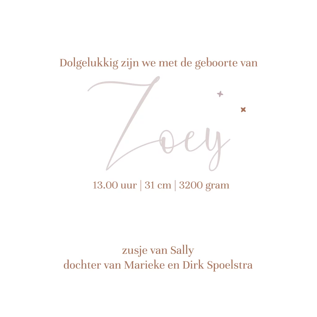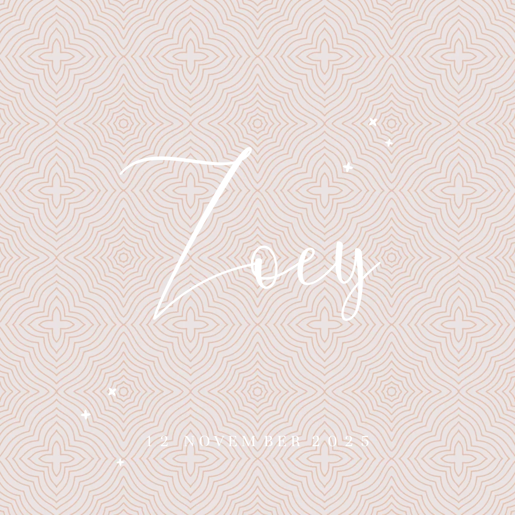 Dit geboortekaartje voor jullie dochter heeft een prachtige lila grijze achtergrond met een geometrisch patroon. De naam en details worden gedrukt in roségoudfolie. Pas het kaartje naar wens aan in de online editor en bestel snel een proefdruk om dit kaartje in het echt te zien!