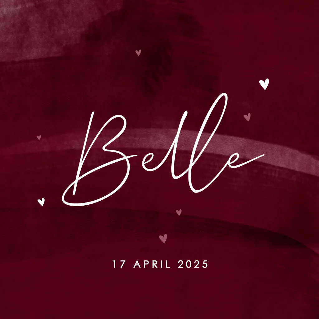 Dit is een lief kaartje voor jullie pasgeboren dochter. Het kaartje heeft een mooie donkere velvet-look achtergrond. De roségoudfolie opdruk past hier prachtig bij. De hartjes maken dit kaartje helemaal compleet. Wil je dit kaartje in het echt bewonderen? Bestel dan snel een proefdruk!