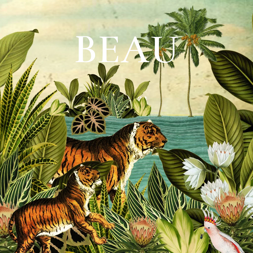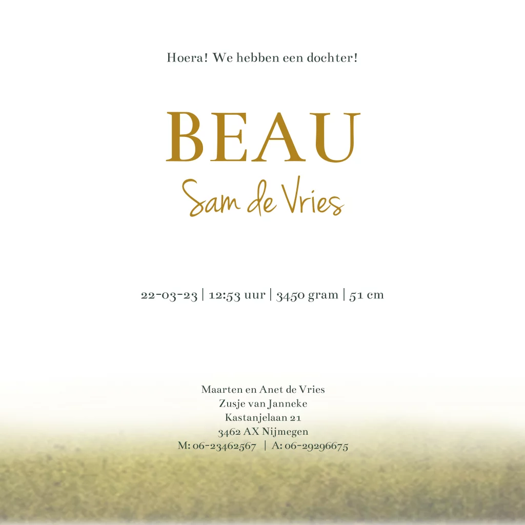 Hippe botanische geboortekaart voor je zoon of dochter met een retro jungle met een moeder tijger en een baby tijgertje. De goudfolie babynaam op de voorkant maakt de kaart extra chique!