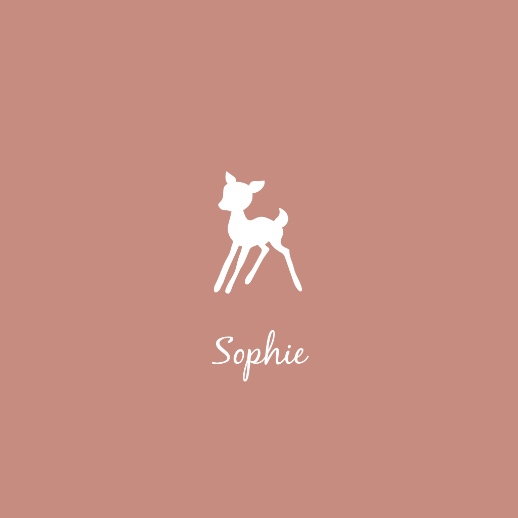 Hip goudfolie geboortekaartje met silhouet van hertje op roestkleur