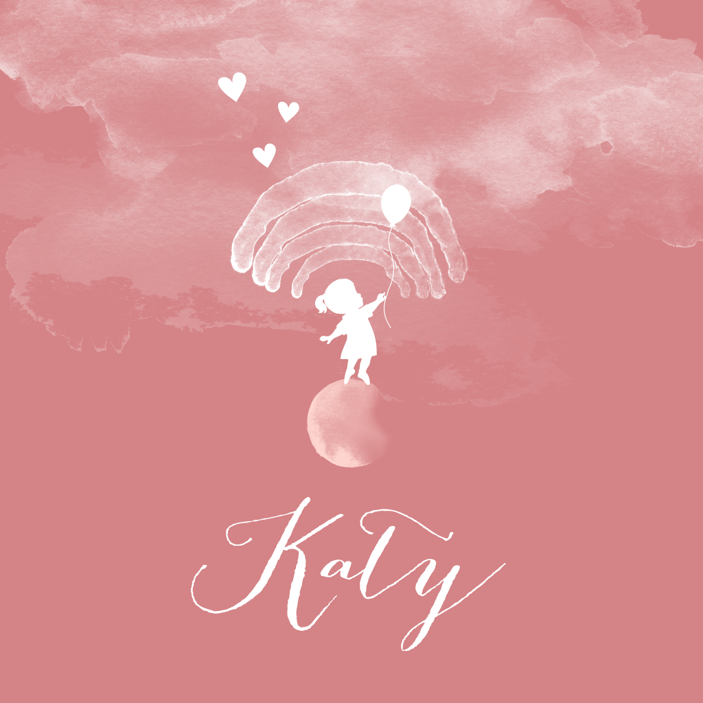 Hip geboortekaartje voor je pasgeboren dochtertje die verschillende trends combineert. Op de voorkant staat een goudfolie silhouet van een meisje die een ballon vasthoudt op een achtergrond van roze watercolour en een regenboogje. Echt een trendy geboortekaartje!