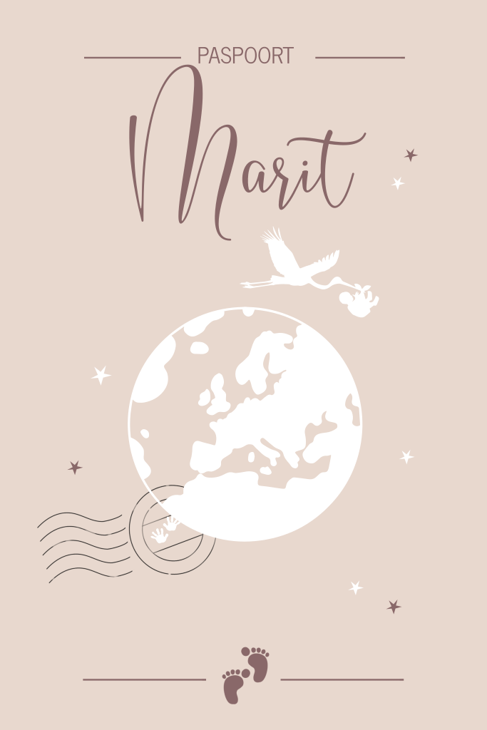 Paspoort geboortekaartje voor een meisje met goudfolie wereld