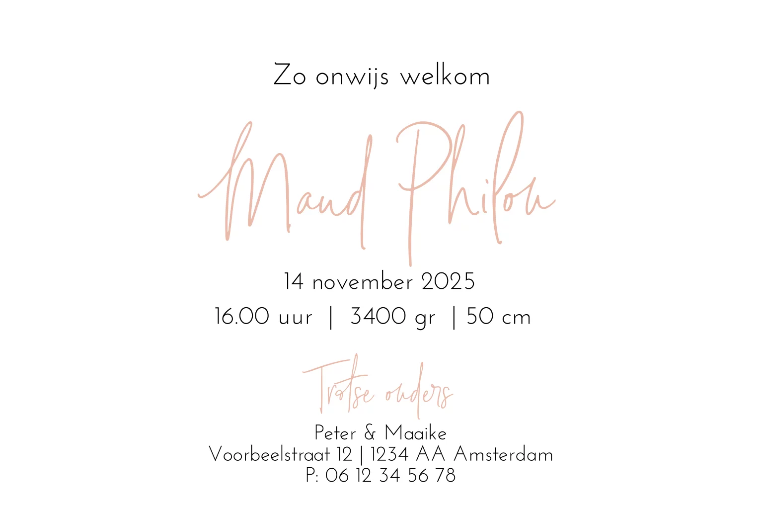 Goed om te weten: Het houten vormpje wordt niet standaard meegeleverd, dit kun je gemakkelijk zelf toevoegen tijdens het bestelproces. Je vindt alle bevestigingsmaterialen hier. Wanneer je de geboortekaartjes ontvangt, kun je het kaartje zelf verrijken met het gekozen houten vormpje.