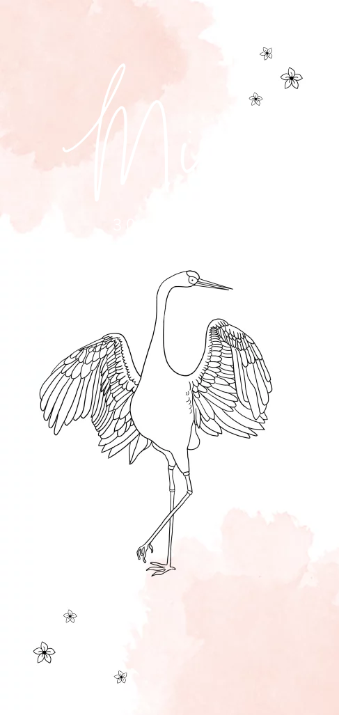 Een prachtig getekende kraanvogel met lieve bloemetjes op een langwerpig geboortekaartje met roze watercolour: wat trendy! Leuk voor de geboorte van een meisje. Ook tof is de datum die wordt gedrukt in luxe goudfolie. Maak hem compleet met eigen teksten en een bijpassende envelop!