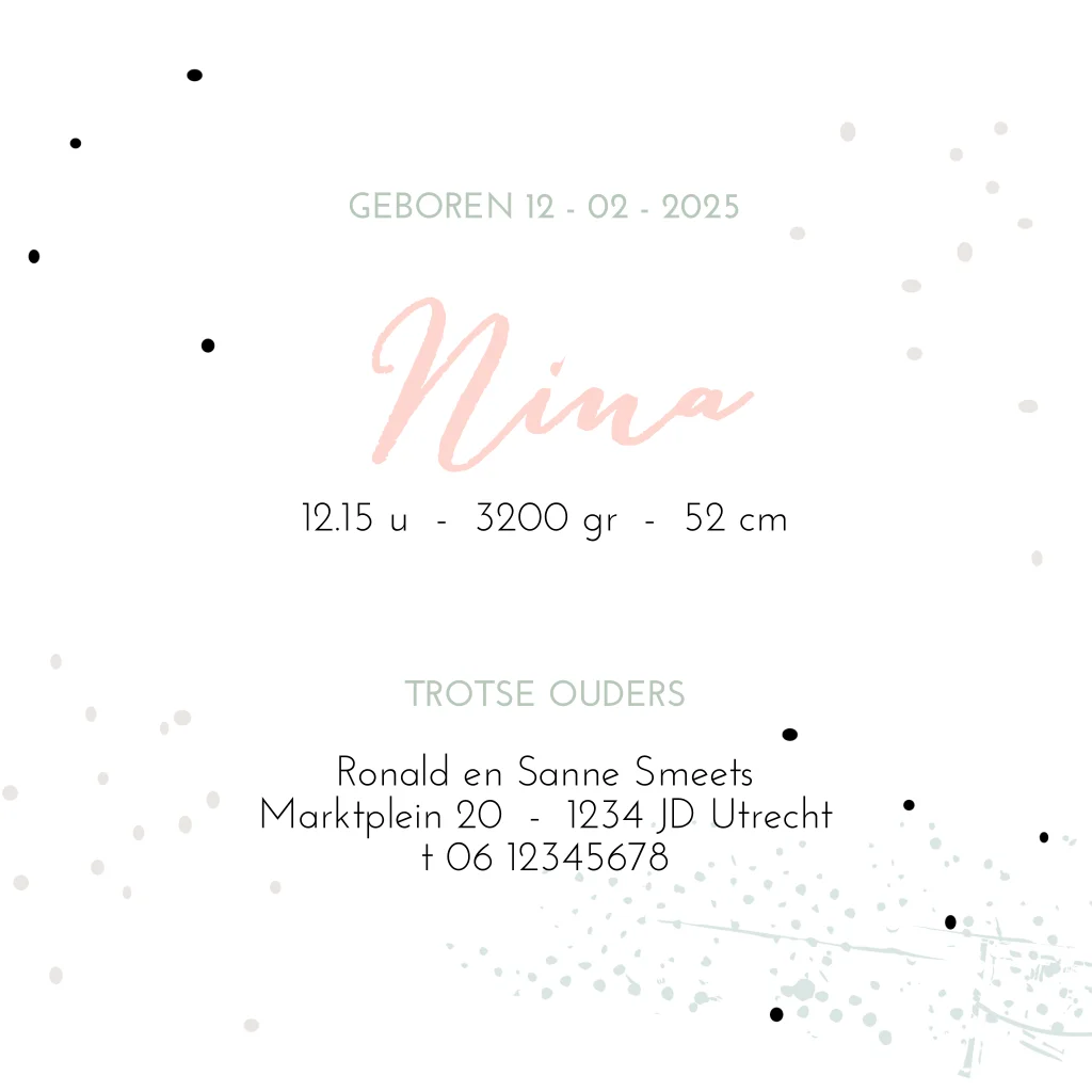 Stoer hoogglans geboortekaartje meisje met hippe waterverf strepen