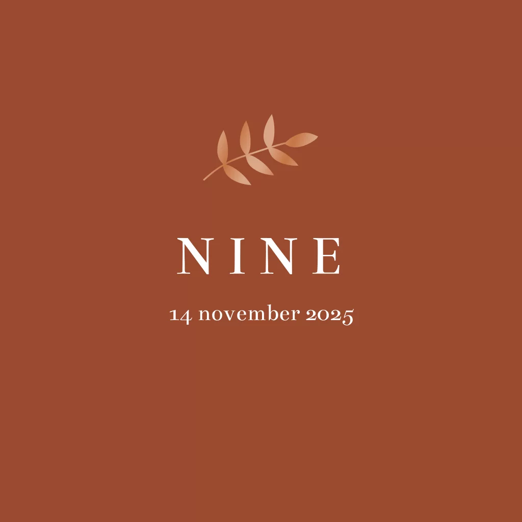 Hoogglans geboortekaartje voor meisje in roestbruin met hip takje