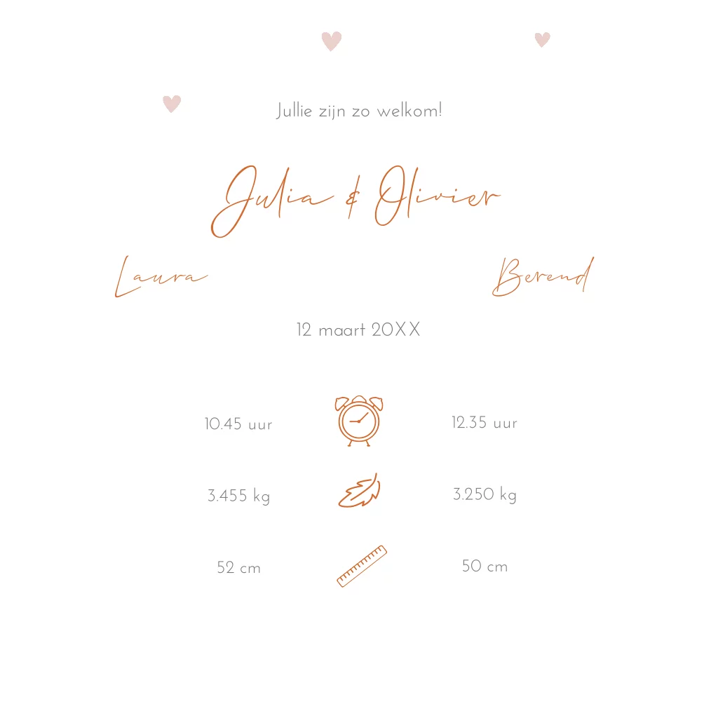 Lief tweelingkaartje met roségoudfolie lijntekening