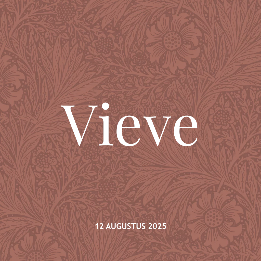 Een stijlvol botanisch geboortekaartje met vintage bloemen. Het kaartje heeft een roestkleur achtergrond. De naam op het kaartje is in roségoudfolie gedrukt. Pas het kaartje volledig naar wens aan in onze online editor, van kleuren tot aan lettertypes.