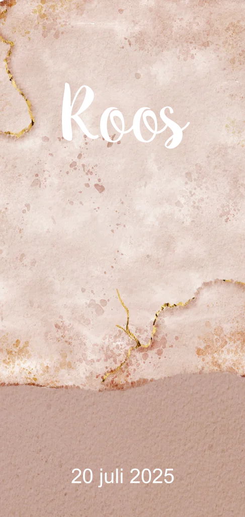 Een origineel babykaartje voor de geboorte van jullie lieve dochtertje. De achtergrond heeft een marmereffect en de naam en geboortedatum worden gedrukt in roségoudfolie.