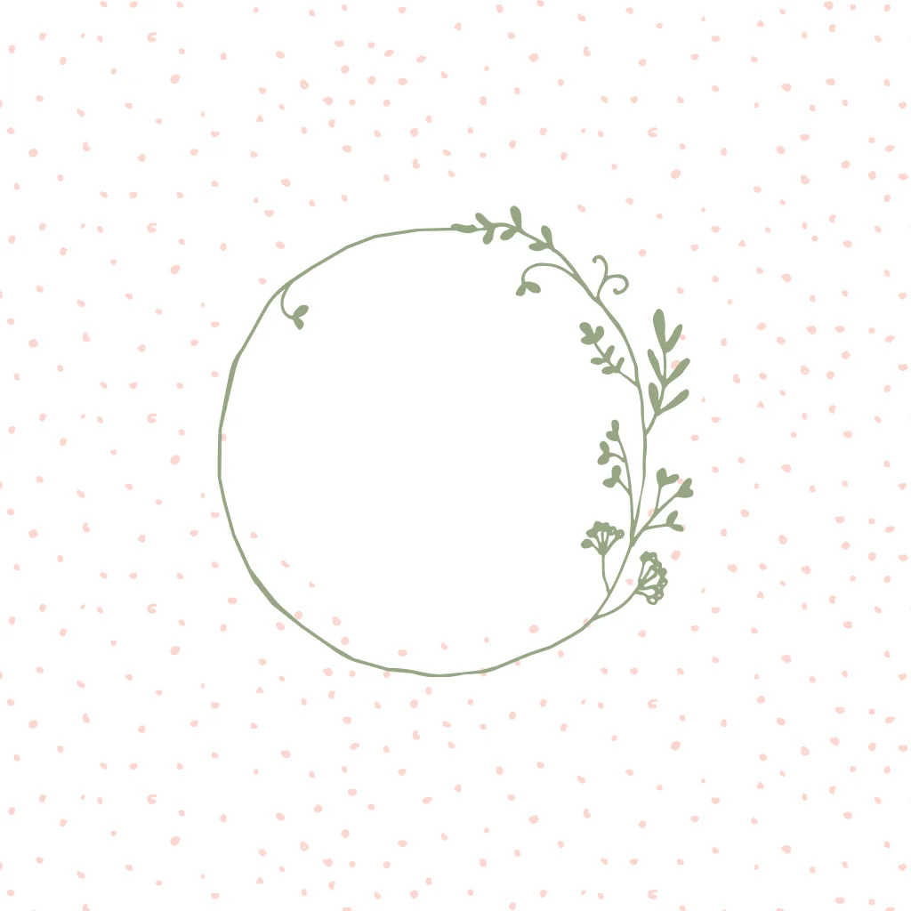 Lief roséfolie geboortekaartje voor meisje met bladerkrans en stipjes