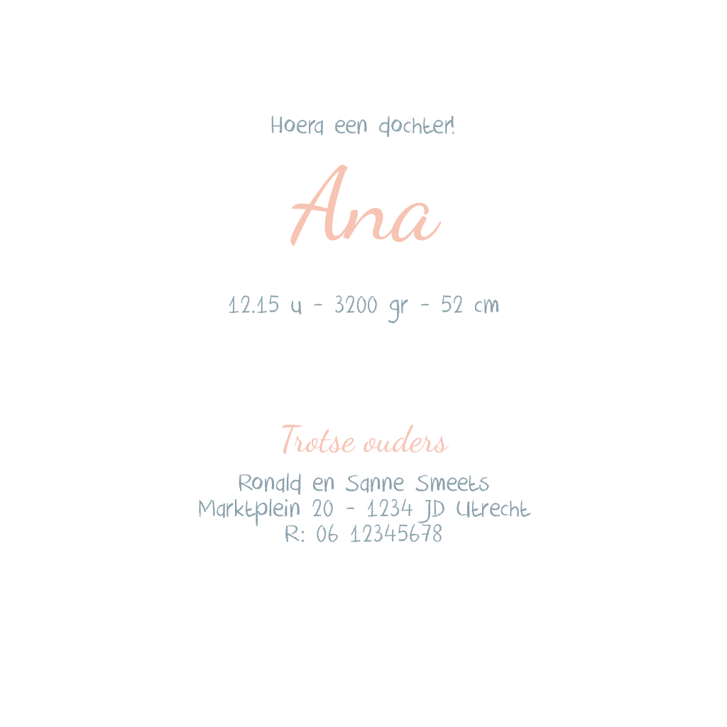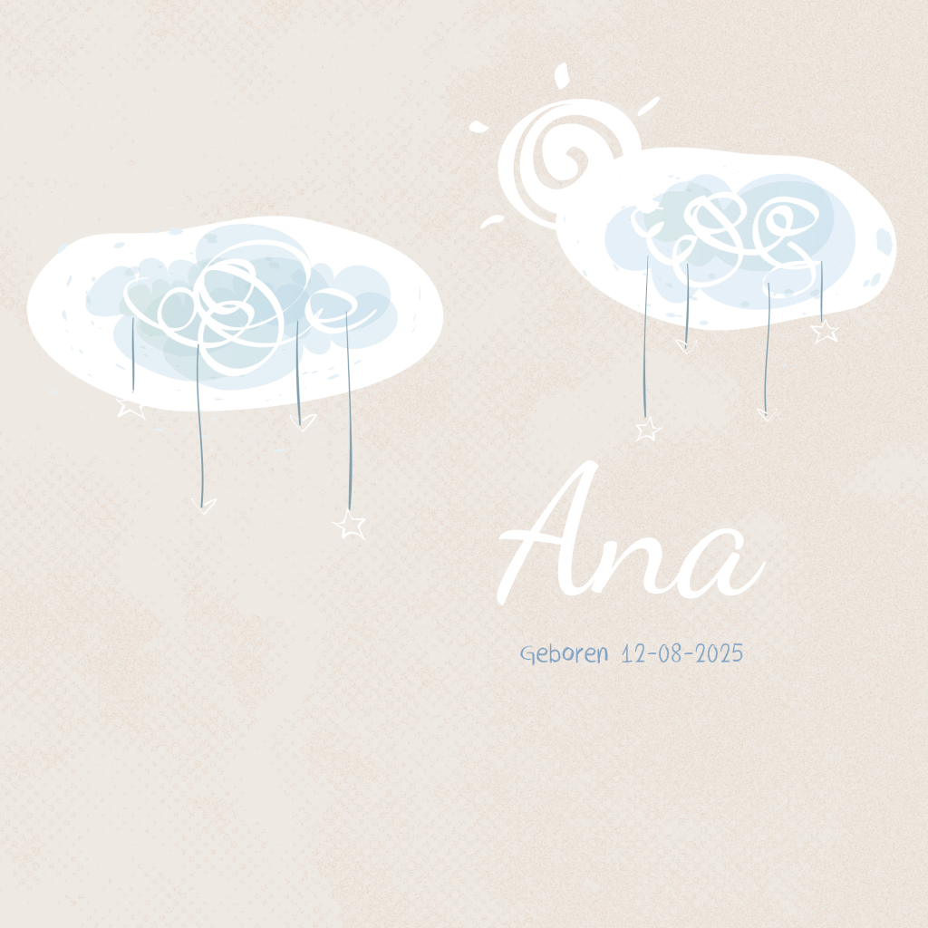 Uniek geboortekaartje met roségoudfolie voor je dochter met lieve wolkjes en een hippe zon.