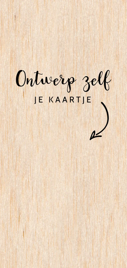Maak zelf je langwerpige echt houten geboortekaartje! Dit staande geboortekaartje met afmetingen 10x21 kun je zelf ontwerpen.