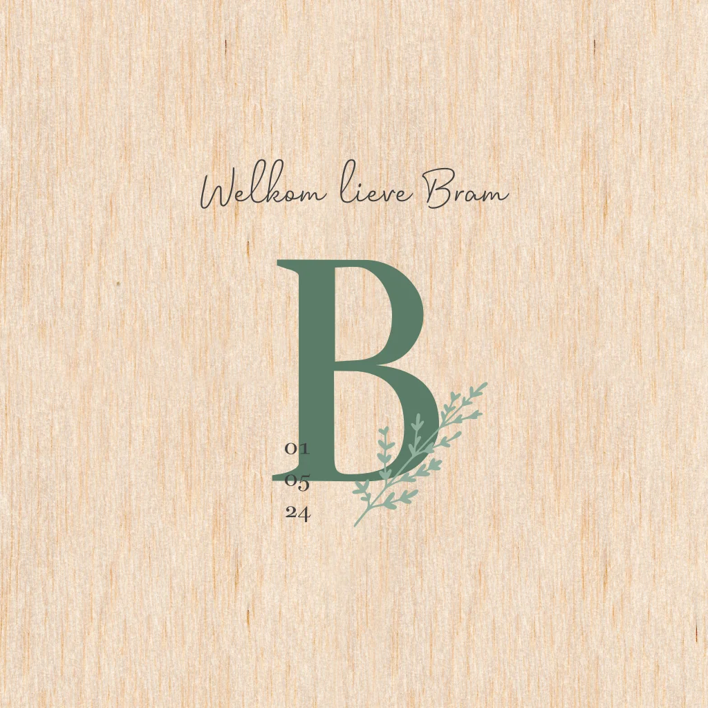 Dit stijlvolle geboortekaartje is van echt berkenhout. Leuk detail: het botanische takje bij het initiaal van jullie kindje. Dat maakt het kaartje hip en stijlvol. Het kaartje is volledig aan te passen naar wens.