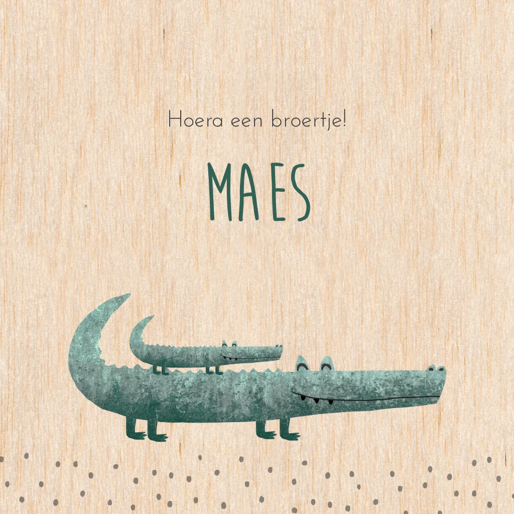 Dit stoere kaartje van echt hout is perfect voor een tweede kindje! Er staan namelijk twee gave krokodillen op dit exemplaar. Ter decoratie zijn er een aantal stippen toegevoegd. Pas zelf tekstkleur en lettertypes aan naar wens.