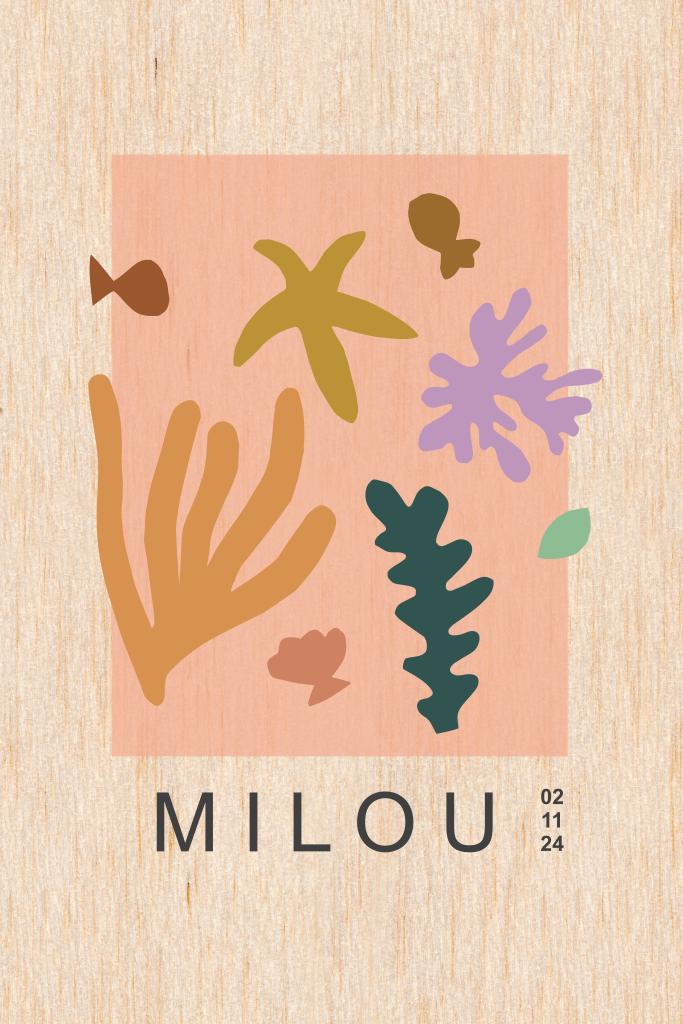 Dit leuke geboortekaartje van echt hout is door de vrolijke kleuren en visjes helemaal van nu. Alle elementen zijn nog aan te passen qua kleur, formaat en plaatsing. Zo maak je hem helemaal eigen!