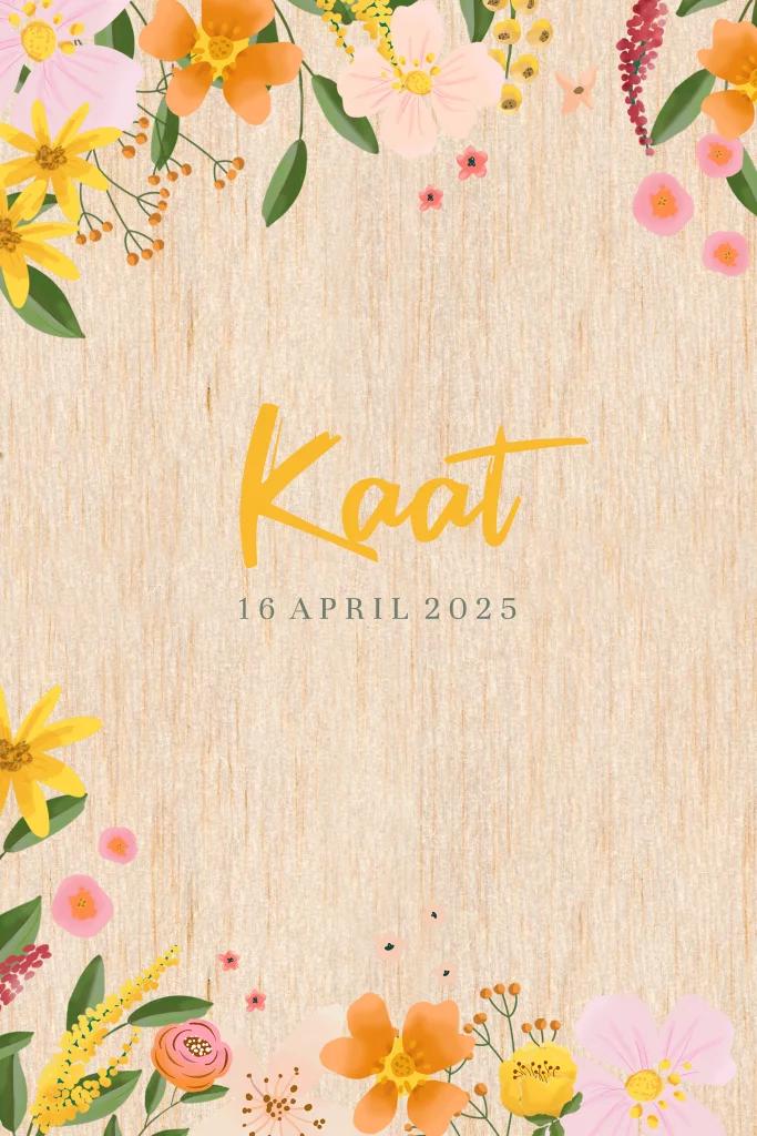 Een ontzettend vrolijke babykaart voor wanneer jullie dochtertje in de lente of zomer wordt geboren. Aan de boven- en onderkant zijn verschillende kleurrijke bloemen te zien. Het houten materiaal en de ronde hoeken maken dit design helemaal af.| Totaalprijs: 0 |