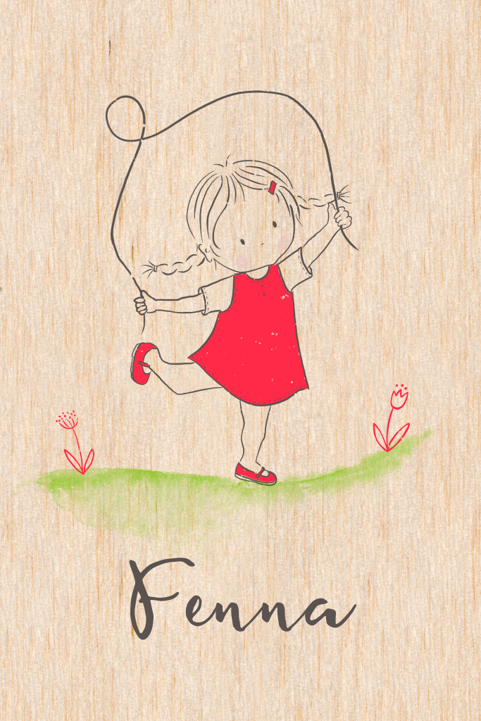 Echt houten geboortekaartje met meisje en springtouw