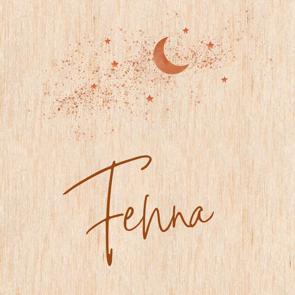 Echt houten geboortekaartjes voor je dochtertje met een maan en sterrenstof in een warme kleur.