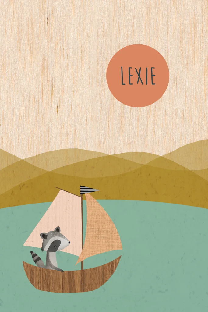 Verwachten jullie een kleine avonturier? Dit hippe babykaartje met illustratie van een wasbeer in bootje op zee wordt gedrukt op echt hout en heeft daardoor een extra avontuurlijke uitstraling. Pas de teksten gemakkelijk aan in de online editor.