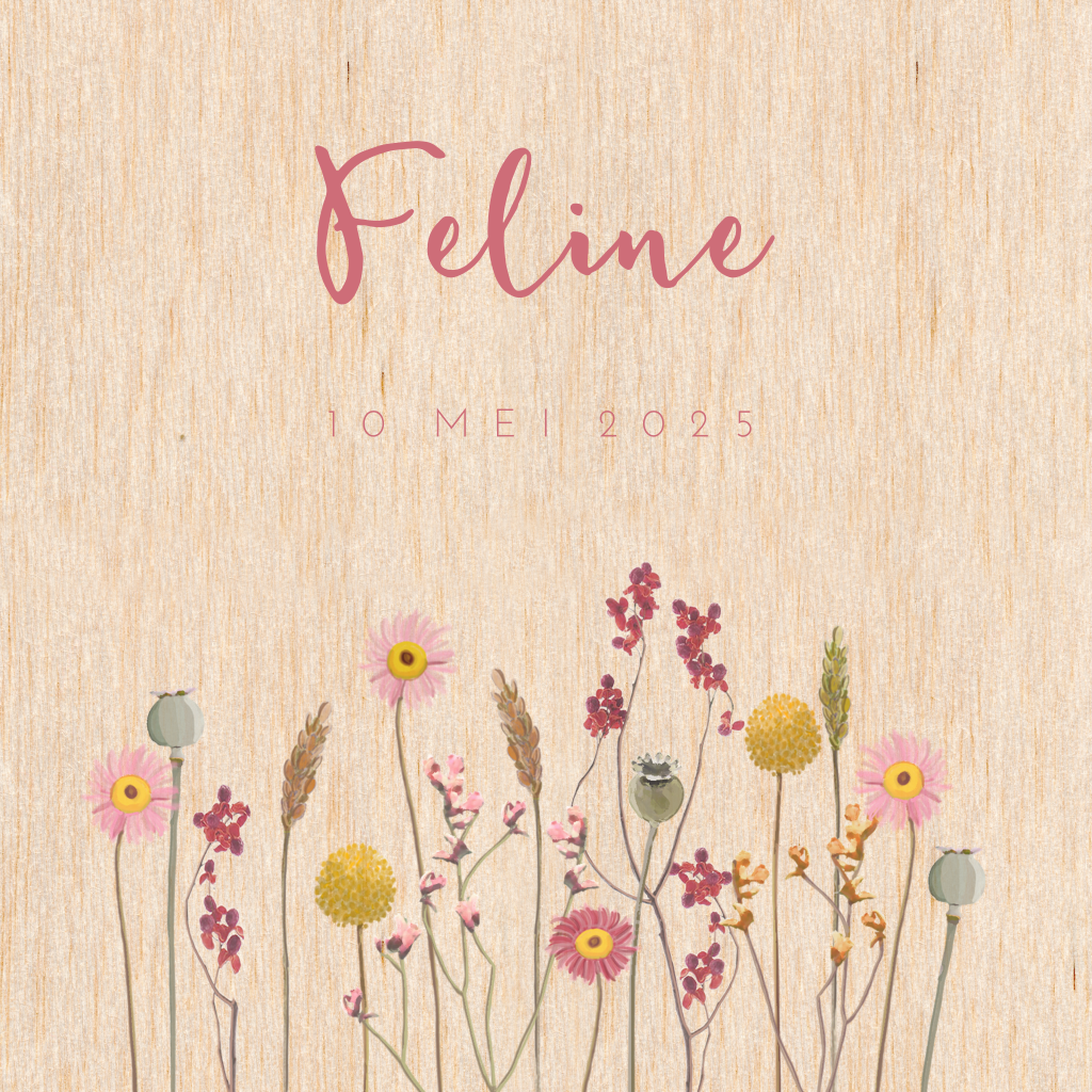 Een echt houten kaartje met mooie ronde hoeken. Dit ontwerp is ontzettend lief vanwege de bloemen op de voorzijde. Iedere echt houten kaart is weer anders.