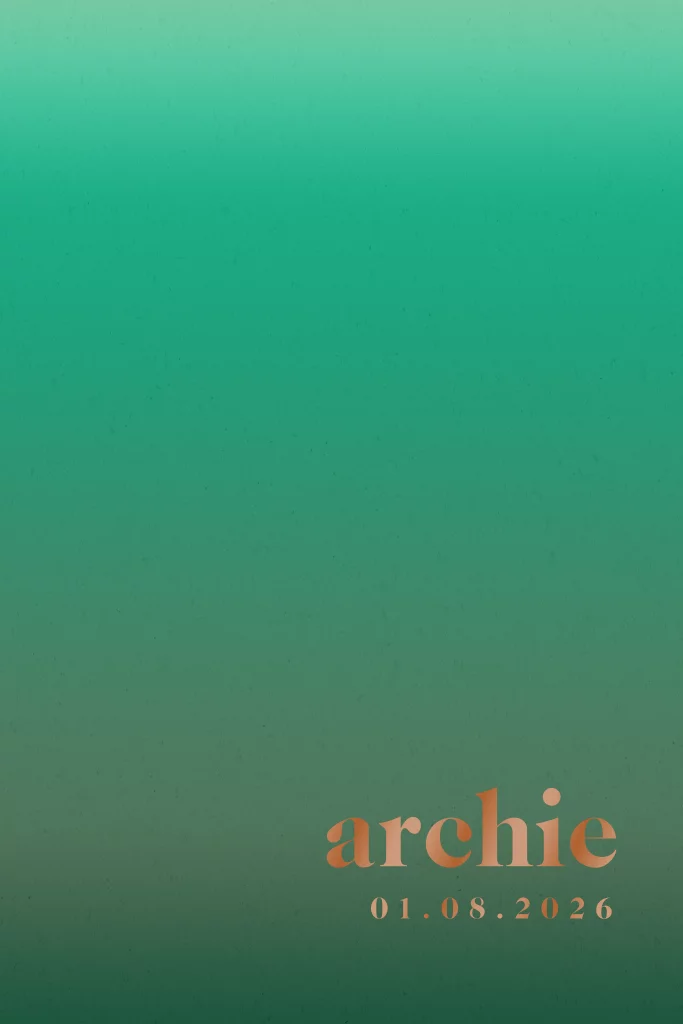 De uitstraling van dit babykaartje is stijlvol en minimalistisch. De naam en geboortedatum van jullie zoontje worden gedrukt in hoogglans en komen prachtig uit tegen de groene achtergrond.