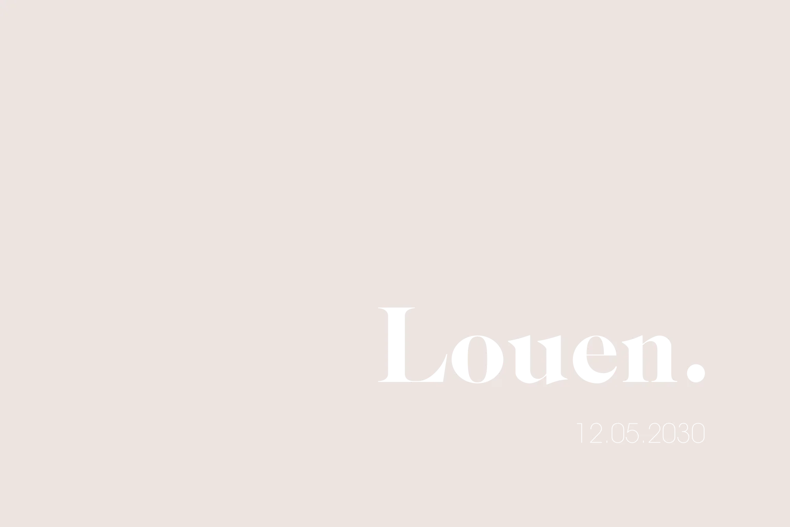 Wat een stijlvol geboortekaartje voor jouw kindje. Dit unisex geboortekaartje heeft een zand kleurige achtergrond en goudfolie letters. Het kaartje heeft een minimalistische uitstraling. De letters zijn gedrukt in koperfolie en zijn naar wens aan te passen in onze online editor.