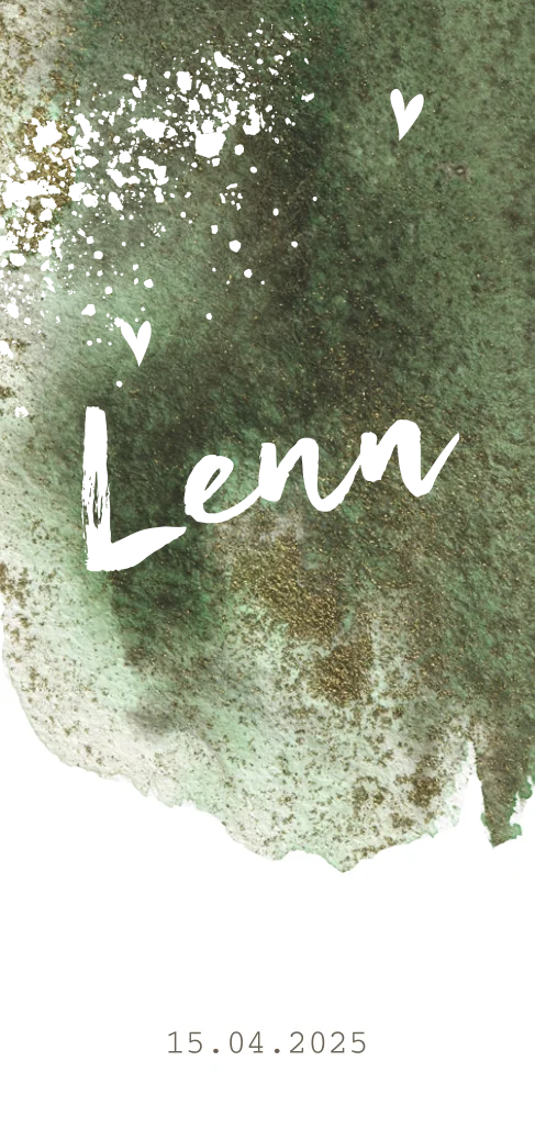 Goudfolie geboortekaart zoontje met groene aquarel en ronde hoeken