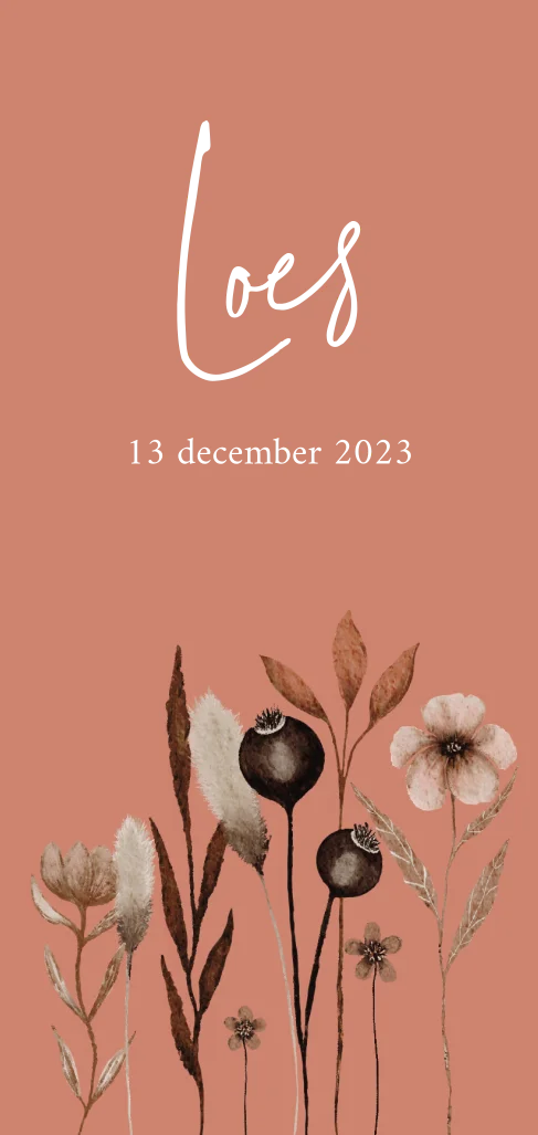 Een trendy en lieve geboorte aankondiging voor jullie dochtertje. De bloemen komen prachtig naar voren tegen de roze achtergrond. De sierlijke goudfolie typografie en ronde hoeken maken dit kaartje helemaal af. Bestel snel een proefdruk om dit kaartje in het echt te zien!