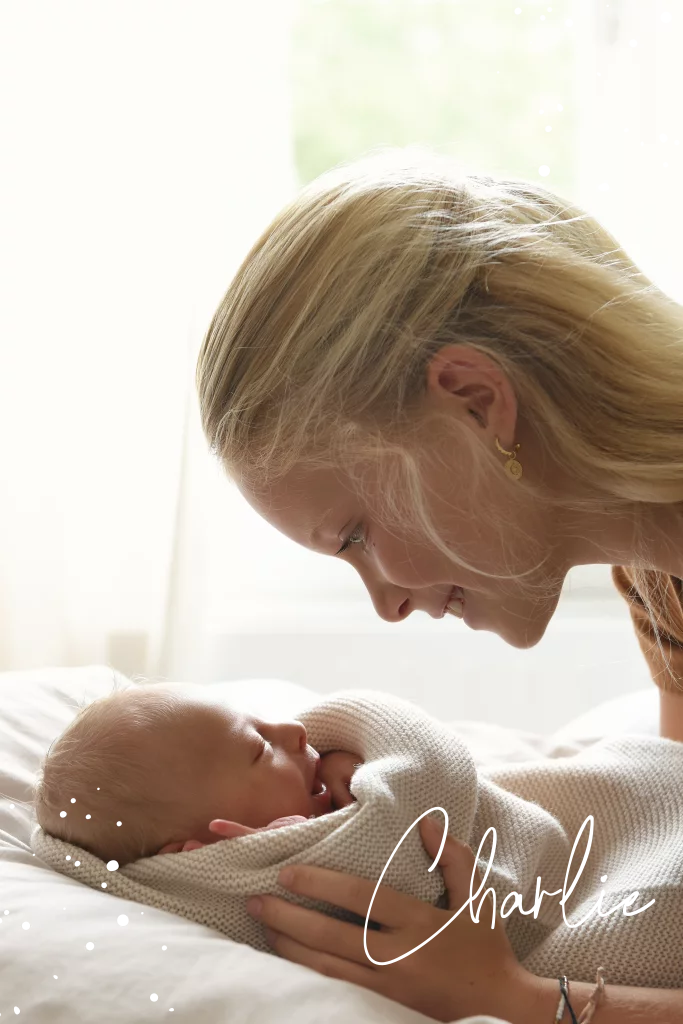 Hip geboortekaartje voor een meisje met een foto van twee zusjes. De goudfolie typografie en ronde hoeken maken dit kaartje helemaal compleet.