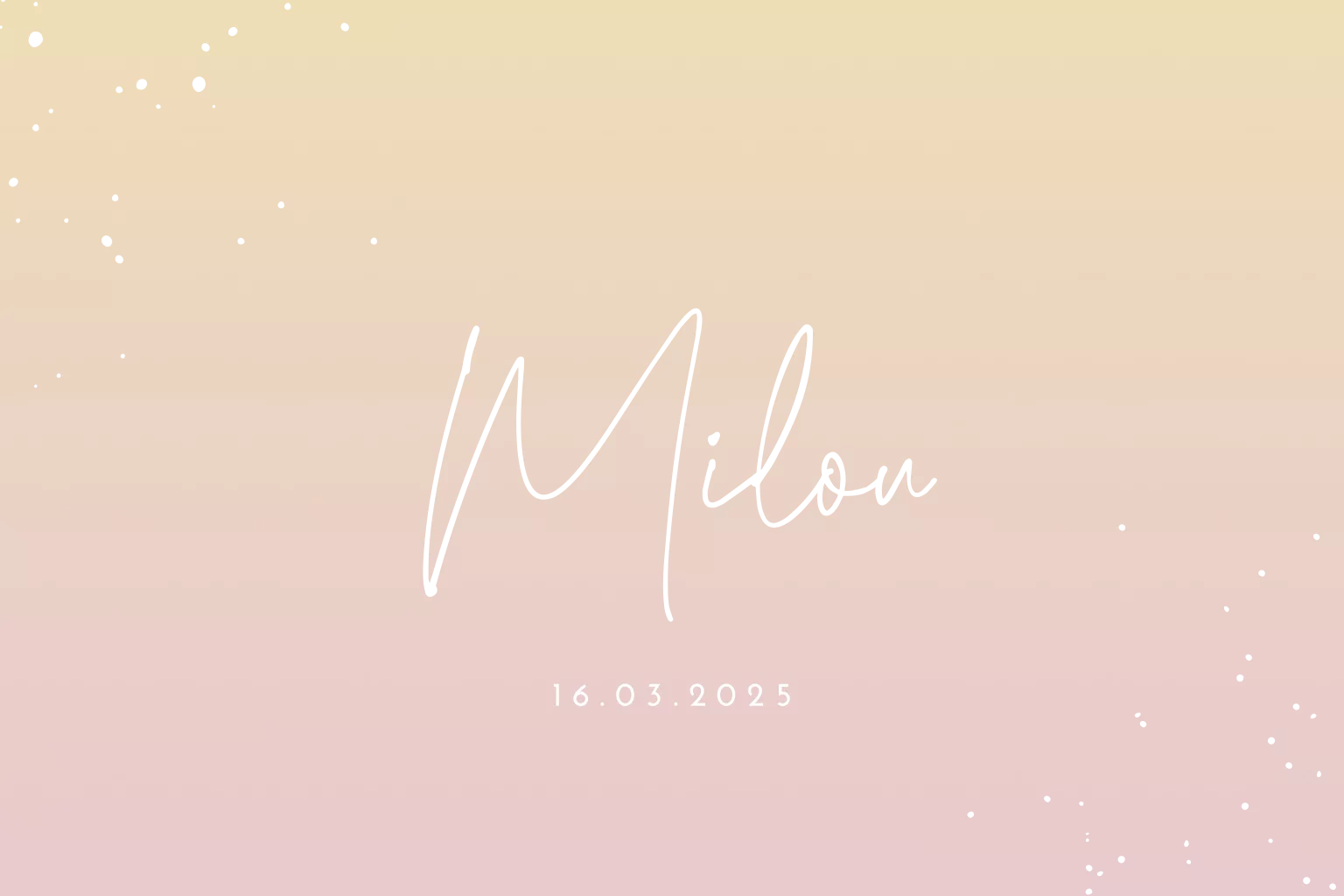 Een gaaf kaartje voor de geboorte van jullie dochtertje. Het kleurverloop op de achtergrond van geel naar roze is heel origineel. De naam wordt in een sierlijk lettertype weergegeven. Het goudfolie en de ronde hoeken maken het helemaal af.