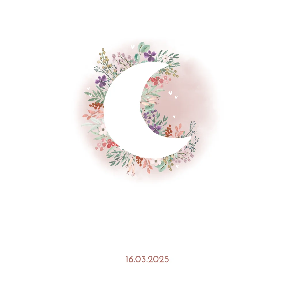 Goudfolie geboortekaartje met watercolour, maan en bloemen