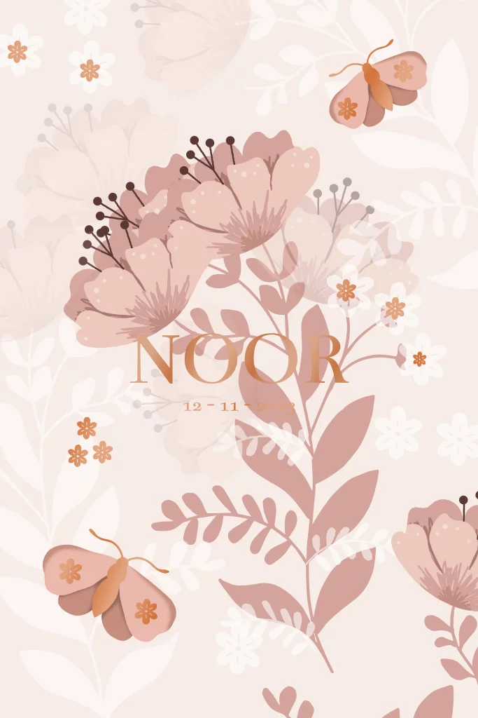 Dit is een prachtig geboortekaartje voor jullie dochtertje. Het kaartje heeft een roze achtergrond met licht bloemenpatroon. Centraal op het kaartje staat een grote bloem met daar doorheen de naam en geboortedatum gedrukt in hoogglans. De ronde hoeken geven dit kaartje een zachte uitstraling.