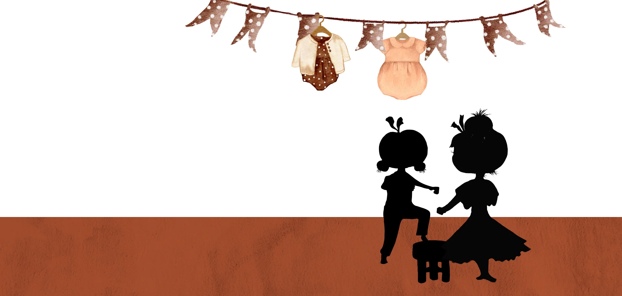 Op dit lieve kaartje voor jullie pasgeboren dochter is een tafereeltje te zien. De silhouetjes van twee grote zussen staan onder een feestelijke slinger. Aan de slinger hangen babykleertjes. De typografie in roségoudfolie en ronde hoeken maken dit kaartje helemaal compleet!