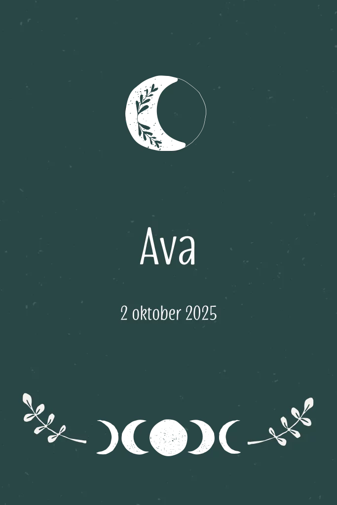 Prachtig minimalistisch geboortekaartje met een boho maantje en maanstanden. Het kaartje heeft ronde hoeken en krijgt daarmee een zachte uitstraling. De petrolgroene achtergrond en goudfolie accenten combineren mooi met elkaar.