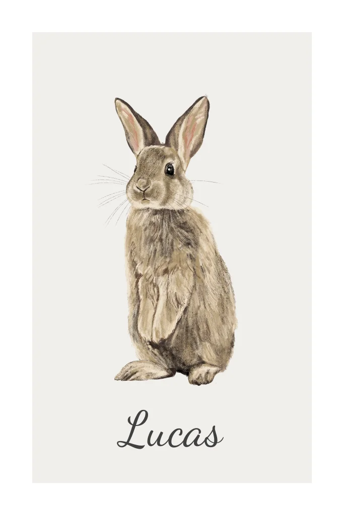 Dit super schattige geboortekaartje heeft een extra zachte uitstraling door de ronde hoekjes. Met een getekend konijntje op een lichtbruine achtergrond in een wit kader.