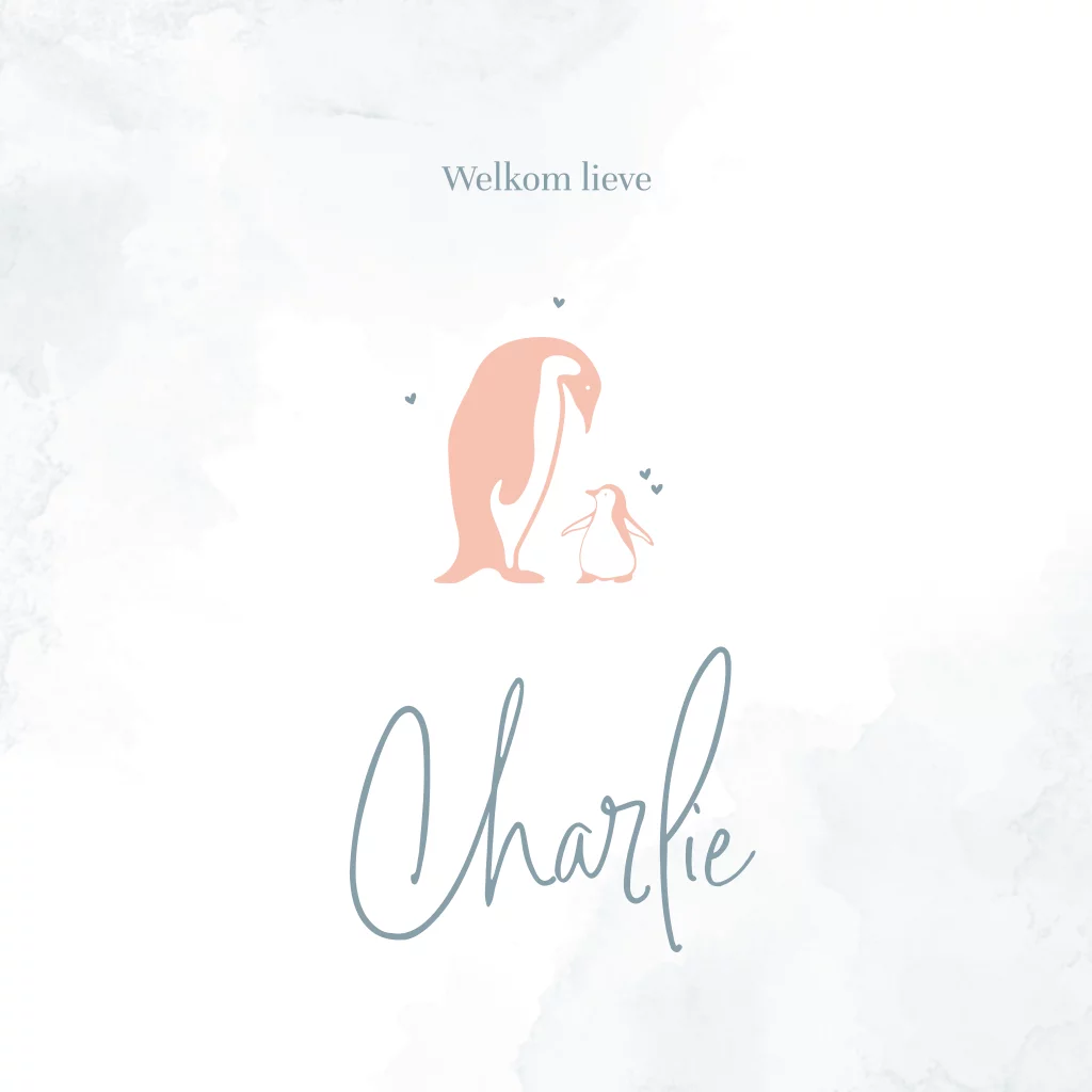 Een minimalistisch lief geboortekaartje met moeder pinguïn en haar kleintje. De ronde hoeken van dit geboortekaartje maakt het geboortekaartje helemaal hip.