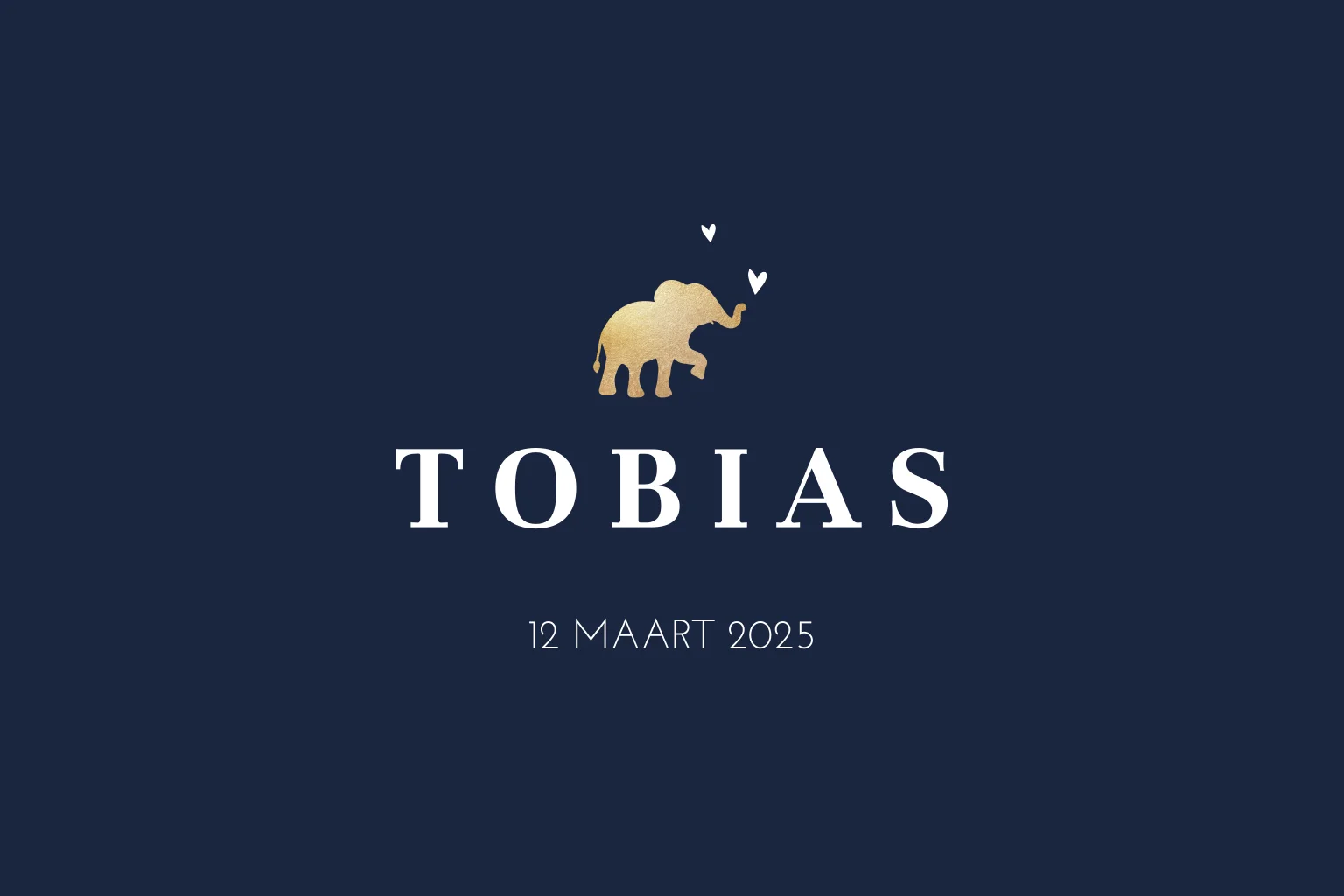 Hip geboortekaartje met ronde hoeken voor je pasgeboren zoon. Met een goudlook silhouet van een olifantje op donkerblauw is dit echt een hip en minimalistisch geboortekaartje!