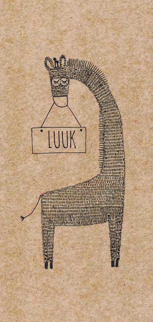 Lief rondhoek geboortekaartje met getekende giraf op kraftlook