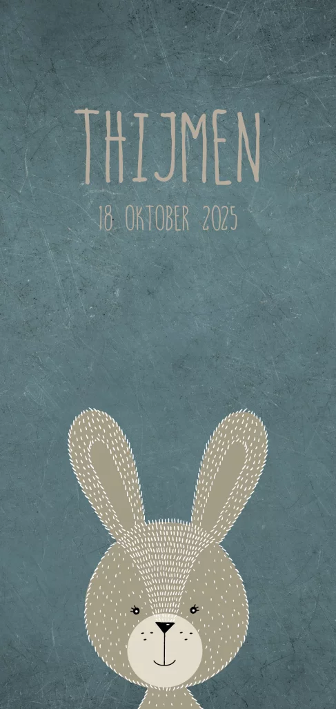 Op dit minimalistische kaartje voor de geboorte van jullie zoon staat de illustratie van een konijn. De blauwe achtergrond zorgt voor een stoere uitstraling en de ronde hoeken maken dit kaartje helemaal af!