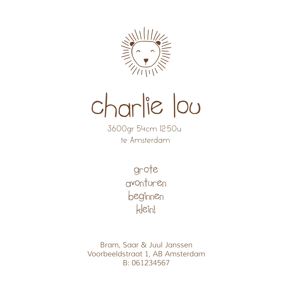 Een stoer unisex geboortekaartje met een zandkleur velvet-look. Dit kaartje is afgewerkt met ronde hoeken. Wil je foliedruk toevoegen aan het kaartje? Dat kan heel gemakkelijk in onze gemakkelijke online editor. Bestel een proefdrukje en bewonder het kaartje in het echt.