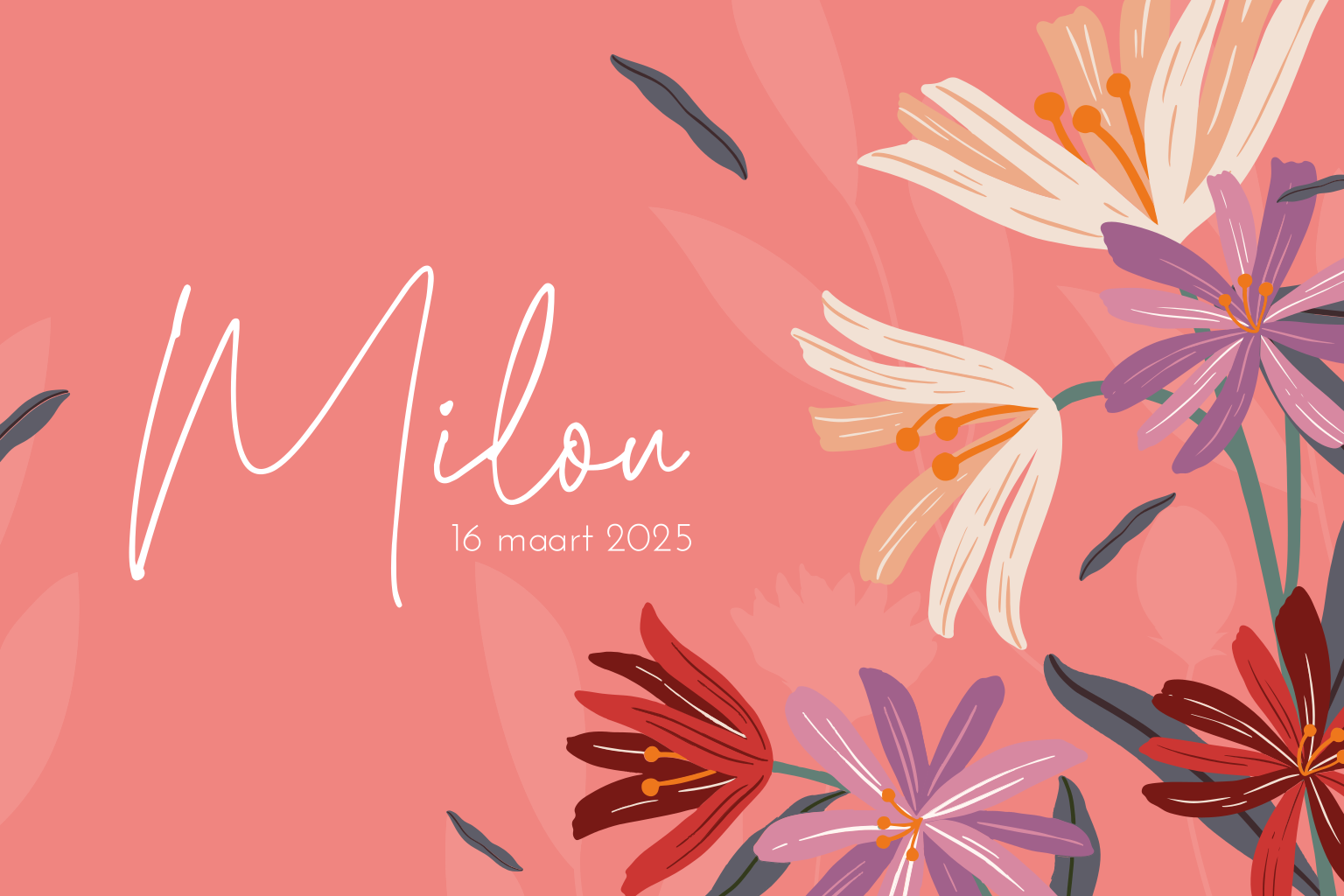 Geboortekaartje voor dochter met ronde hoeken en vrolijke bloemen